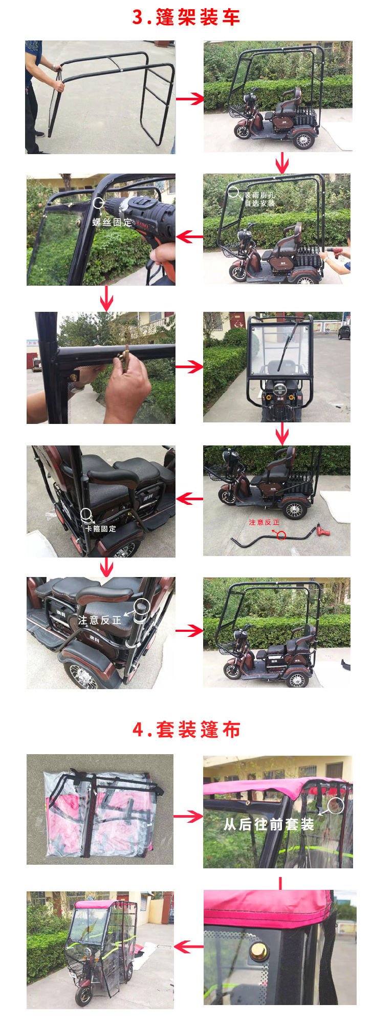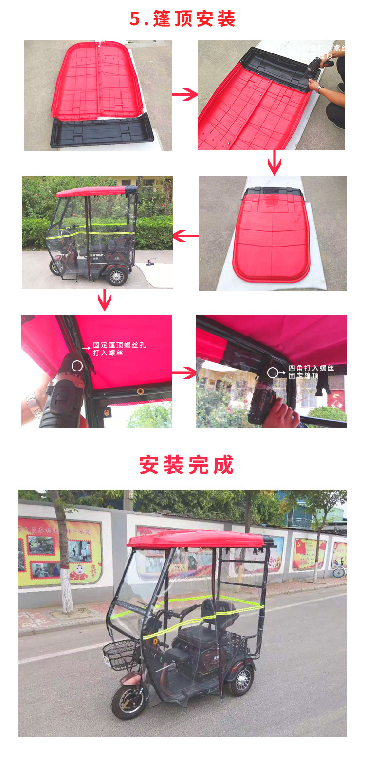 安裝三輪摩托車車篷,只需五步!